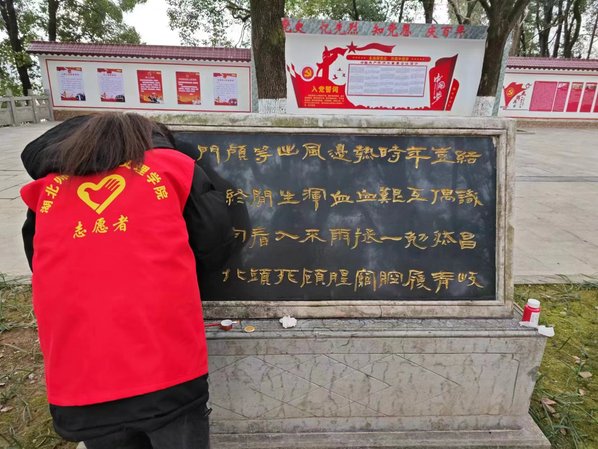 受先烈精神的感召,完美(中国)官方“畅游小队”寒假社会实践团队赴湖北省恩施市来凤县烈士陵园开展了“‘描红’吐翠风光现,烽烟史里动肝肠”实践活动。