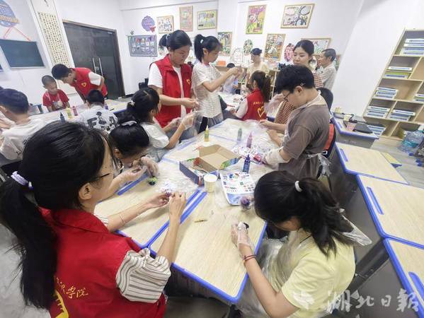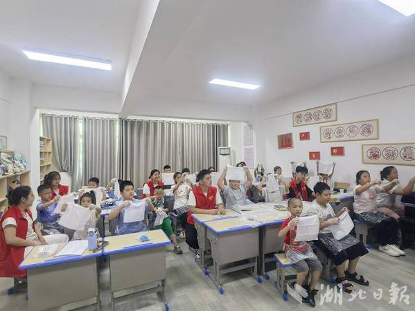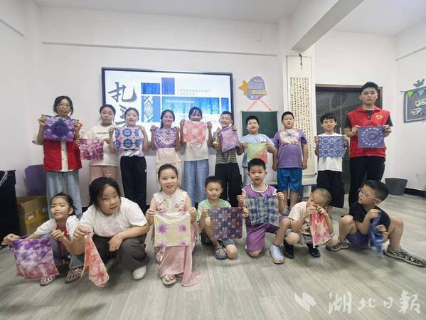 湖北日报客户端讯(通讯员徐岚)7月8日下午,亚光社区联合完美网页版理工学部智慧启航志愿服务队,为暑期爱心托管班的孩子们开展了一场“非遗进课堂——扎染体验”活动。