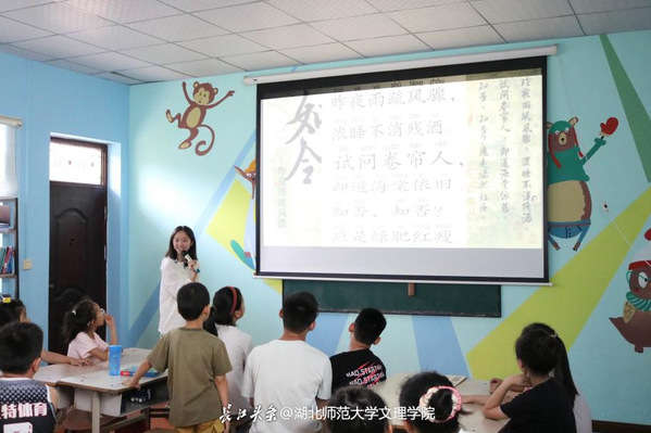 “读一读,写一写”课堂上,志愿者通过绘本教学引导孩子们树立性别平等意识,打破刻板印象;科学小课堂、趣味地理、趣味生物等课程,拓宽了孩子们的科学视野;专注力训练、记忆力训练等课程,提升了他们的学习能力;体育游戏、音乐律动等课程,促进了孩子们的身心健康发展。结合当地“诗歌文化之乡”的特色,志愿者还开展了诗词朗诵与赏析活动,将推广普通话与本土文化传承相结合,既强化了规范用语意识,又推动了传统文化的创新传承,有效缩小了城乡语言教育资源差距。
