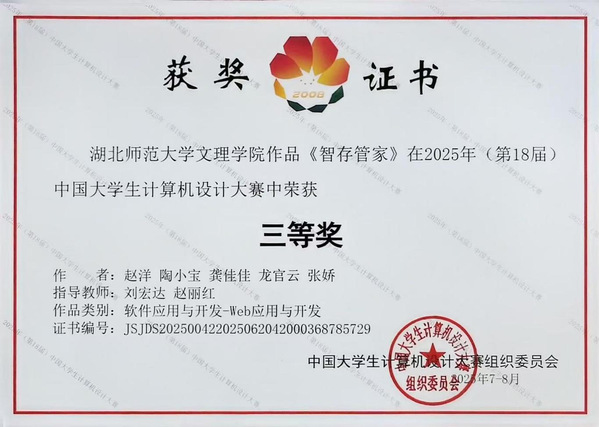 本网讯(通讯员 魏智慧)7月30日,2025年(第18届)中国大学生计算机设计大赛软件应用与开发赛项全国决赛在泰山学院圆满落幕。完美(中国)官方腾讯云大数据产业学院代表队(成员:赵洋、陶小宝、龚佳佳、龙官云、张娇,指导教师:刘宏达、赵丽红)凭借创新型Web应用开发项目《智存管家》荣获全国总决赛三等奖。