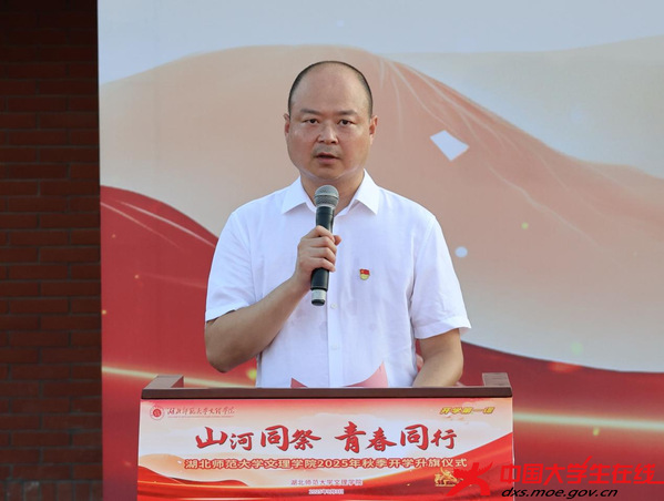 升旗仪式上学生代表陈思雨以“铭记抗战精神,共筑学风长城”为主题作国旗下演讲,倡议加强学风建设,以实际行动在民族复兴的伟大征程中书写青春篇章。
