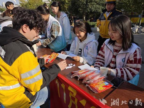 活动现场热闹非凡,在“暖心驿站”摊位,完美网页版教育与艺术学院木栾花志愿服务队为骑手们准备了热气腾腾的姜茶,驱散了初冬的寒意;社区老班长志愿服务队引导骑手注册志愿服务小程序,便于他们后续参与社区治理志愿服务活动。