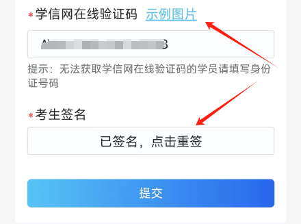 8. 填写学信网在线验证码,以便审核.点签字保存后,提交