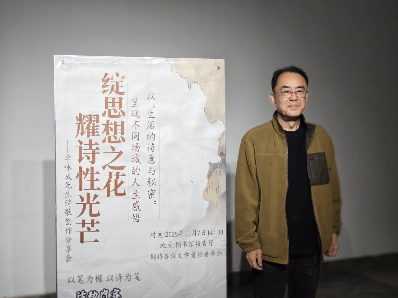 “真诚是写作最大的技巧,”他强调,“要勇于直面生活,从日常中提炼最自然和谐的诗意。阅读与生活,是培育诗心的关键。”