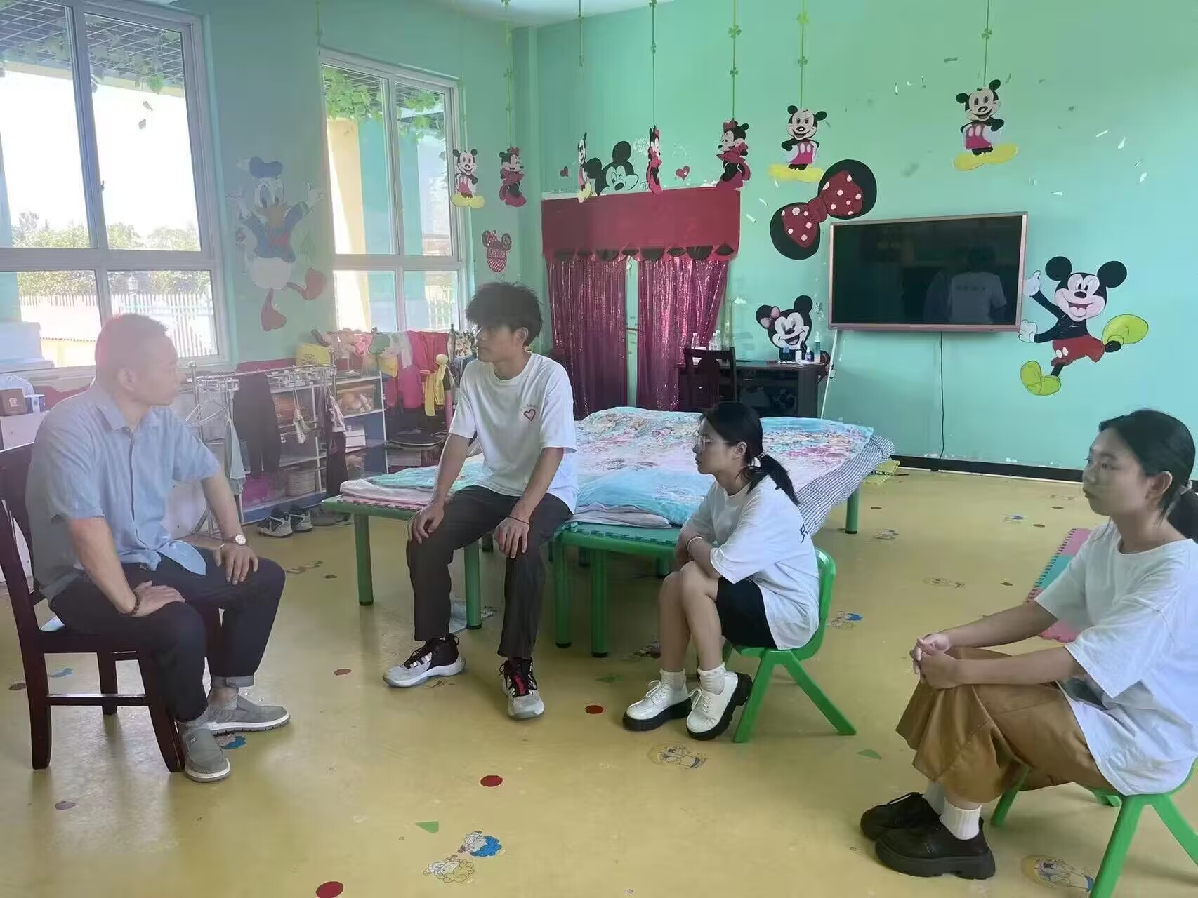 2023年7月17日上午,完美网页版学工部陈小龙副部长来到了钟祥市九里乡民族小学理工学部暑期社会实践的支教点,对在此支教的学生进了看望慰问,关心询问了学生在实践过程中的生活,工作以及遇到的实际困难,陈部长要求学生一定要注意安全,有困难随时找他,对实际工作也进行了指导。