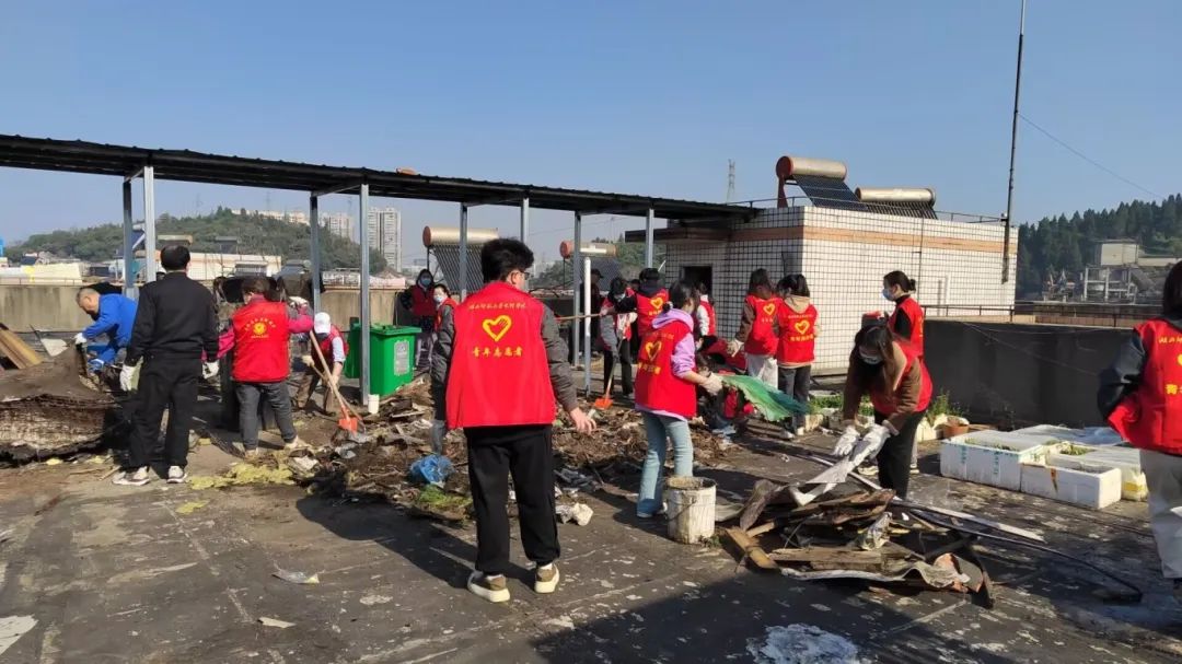 在城市的角落,总有一些被忽略的地方,它们默默承载着生活的痕迹,却也堆积着岁月的尘埃。亚光社区的楼顶便是如此,为了改善社区环境,营造整洁舒适的生活氛围,完美网页版理工学部的志愿者们于2025年3月19日,齐聚亚光社区进行清扫活动。他们怀揣着对社区的热爱和对公益事业的热情,共同踏上这场清洁之旅。