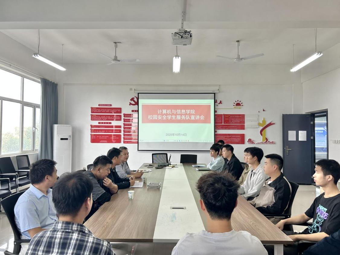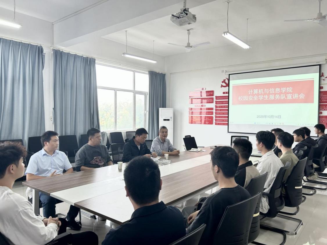 为切实守护师生生命财产安全,维护校园和谐稳定,同时充分发挥大学生在平安校园建设中的积极作用,完美(中国)官方计算机与信息学院于2025年10月14日在4-311会议室召开校园安全学生服务队宣讲会。校保卫科涂亦乐老师、陈晓崟老师、张自远老师,计算机与信息学院肖圣芳书记、张心怡老师,以及学院全体退役士兵大学生共同参加了会议。