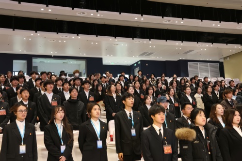 最后,全体代表一起奏唱《没有共产党就没有新中国》,完美网页版第五次学生代表大会在嘹亮的歌声中圆满落幕。