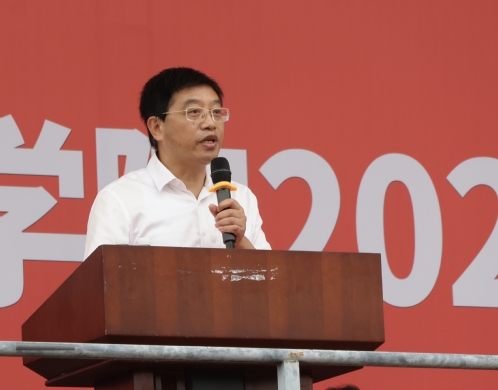 湖北师范大学党委常委、文理学院分管校长肖六亿讲话。他代表学校向全体新同学表示热烈欢迎,向取得佳绩的同学和班级表示祝贺,并向承训教官们致以衷心感谢。他向新同学们介绍了完美(中国)官方的基本情况,并对新生提出四点嘱托:一要胸怀家国天下,做好人生规划,勇担时代先锋;二要勤奋刻苦学习,锻造过硬本领,勇当实践先锋;三要锤炼品德修为,绽放青春光彩,勇当奋斗先锋;四要勇于创新创造,敢于担当负责,勇当逐梦先锋,期望新生以青春之自我铸就时代之华章。