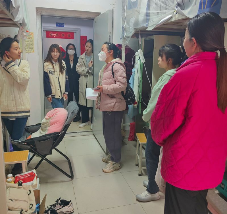 各位老师及团学干部干事们于下午四点准时在警卫室集合,清点完人数后开始寝室走访。此次查寝的目的是检查学生宿舍是否存在违规使用电热锅大功率电器等违规用电的情况,同时检查寝室环境卫生是否合格。在查寝过程中,老师们多次强调寝室用电安全和寝室卫生问题,询问和关心了学生们在校期间的学习生活情况,并且解答了学生们提出的困惑,鼓励学生们在空余时间多加强体育锻炼,务必做好寝室内务整理,细心叮嘱学生们要预防甲流,提高人身安全防范意识。