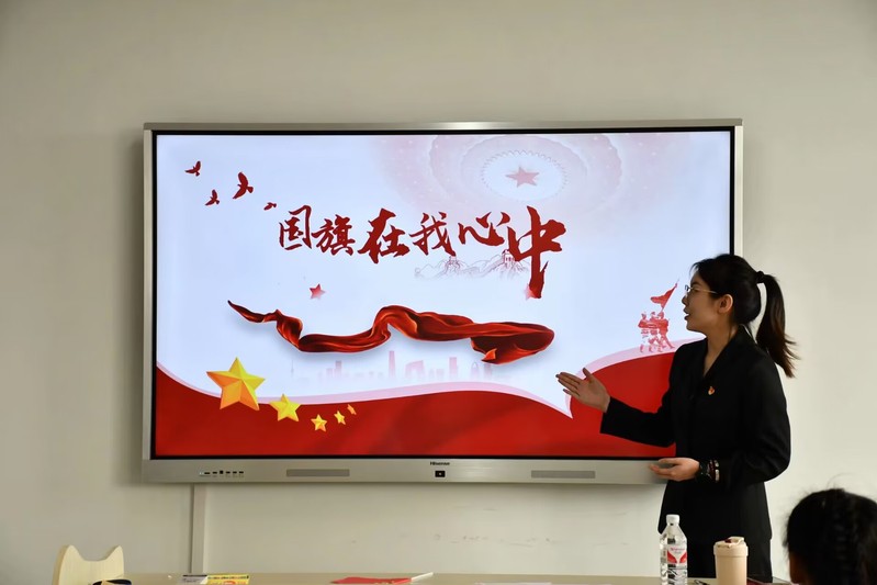 在实验楼内,一场寓教于乐的实验小活动正在进行。欧阳智欣同志通过讲述“红旗里的故事”,引导学生们积极参与到红旗的剪裁制作活动中学生党员欧阳智欣同志以清晰的思路、真诚的话语,带领学生们重温革命历史,讲述“红旗里的故事”,共同回顾中国共产党的光辉历程。整场党课内容丰富,阐述透彻,引导少先队员们铭记新中国来之不易,感受生在国旗下、长在党的怀抱中的幸福;在故事的推进中引出红旗的剪裁制作活动,少先队员们在剪裁五星红旗的过程中感悟红旗寓意,体会到其中浓浓爱国情谊。