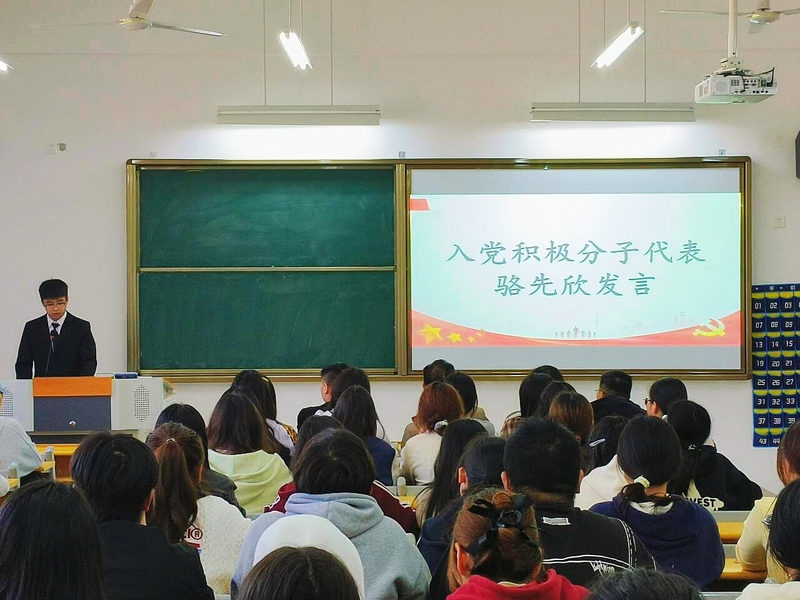 主持人郭旭林在开场中强调:“本次培训不仅是理论学习的课堂,更是锤炼党性的熔炉。全体学员要以‘空杯心态’投入学习,用信仰之光照亮成长之路,用实干担当书写青春答卷。”汉语言文学2401班骆先欣作为入党积极分子学员代表发言,他以"以党章为镜锤炼党性修养"为主题,结合"人生万事须自为,跬步江山即寥廓的诗句,号召全体学员将理论学习转化为行动自觉,在日常学习生活中发挥模范带头作用,以实际行动向党组织靠拢。