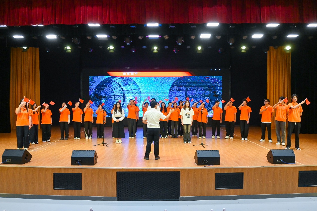 学院学生小组汤皓然、周亚兰等同学,以学院江西瑞金暑假实践行为蓝本,带来了精彩的《吃水不忘挖井人》表演。他们通过生动的演绎,再现了实践中的所见所感,传递了感恩奋进的精神,引发了现场师生的强烈共鸣。随后,学生合唱团献上经典歌曲串烧,《如愿》与《我和我的祖国》的旋律悠扬动人,歌声中饱含着对祖国的热爱与对美好未来的向往,将现场氛围推向高潮。 见面会设置了互动环节,由学院辅导员邓忻吾老师主持。他围绕“从高中到大学最大的转变是什么?”“寝室有哪些不能用的违规电器?”等新生关注的问题展开提问,现场新生积极举手作答,气氛活跃。学院为回答问题的同学准备了精美小礼品,让新生在互动中收获知识与快乐。
