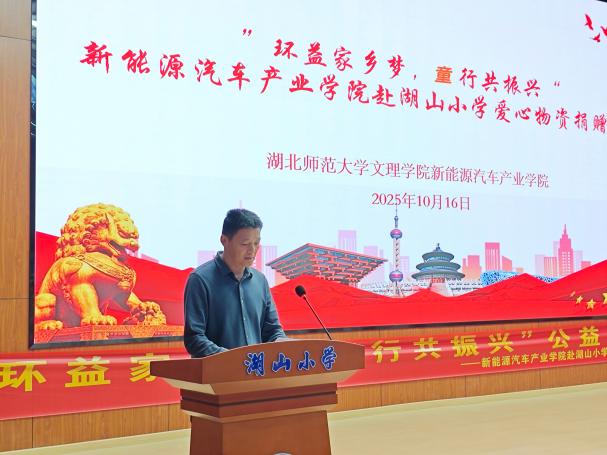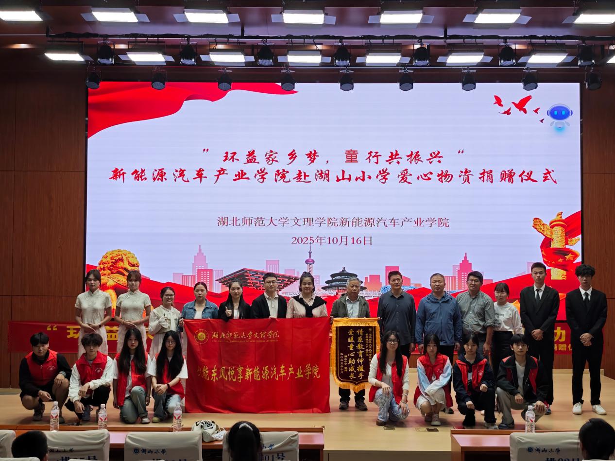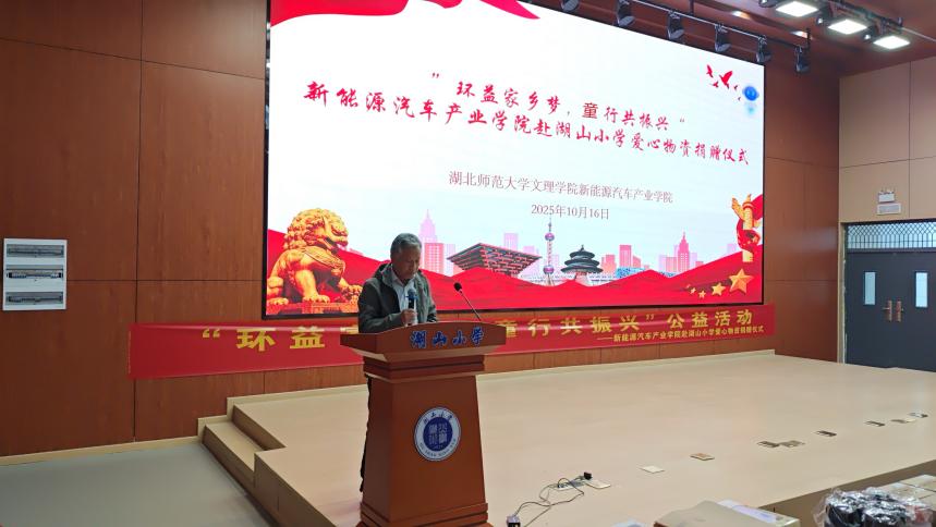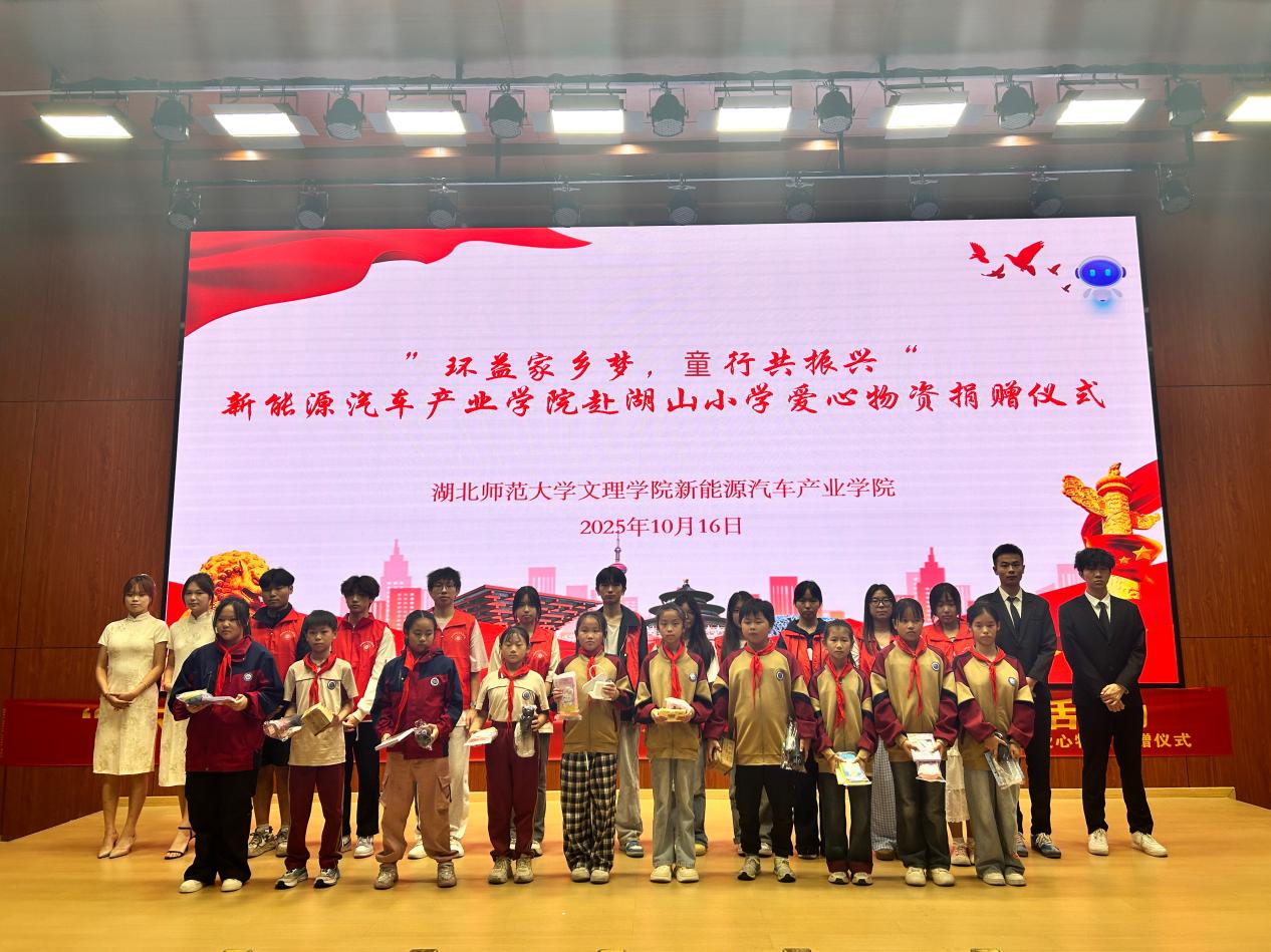 10月16日的落幕仪式上,暖意融融。完美网页版新能源汽车产业学院院长许新山、党支部副书记费凡、团学指导老师石卉、学工主任谭姣、教学主任邢凯,以及湖山小学教联体书记吴风照、校长张柄运等嘉宾出席,共同见证这份爱心的传递。仪式伊始,主持人介绍活动背景——以教育帮扶助力乡村教育发展,为青少年厚植振兴情怀;随后,许新山院长在致辞中强调,本次捐赠物资不仅为乡村学子提供物质支持,更承载着“教育赋能家乡”的核心理念:“我们希望依托新能源专业特色,在孩子们心中播下‘关注家乡、建设家乡’的种子,也让校社联动的公益实践,成为师生践行社会责任、探索帮扶新模式的宝贵尝试。”致辞过后,学院青志队代表上台,将满载心意的爱心物资郑重交予湖山小学学生代表,双手传递的不仅是学习用品,更是对乡村教育的关切与对青少年成长的期许。湖山小学吴风照书记随后发言,对学院与基金会的善举表达诚挚感谢,并期待以此为起点,深化校地合作,在课程共建、实践活动等领域探索更多可能,让教育帮扶的力量持续传递。