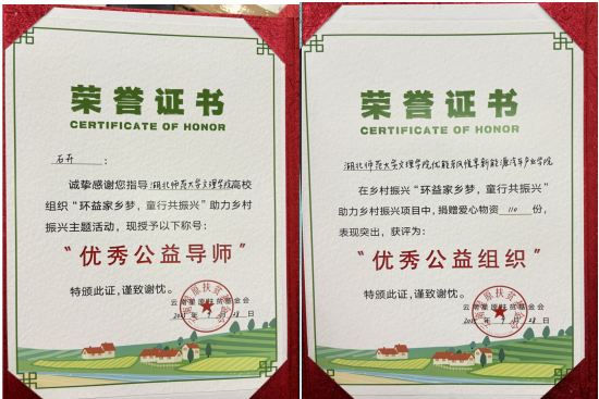 此次活动不仅为乡村学子改善了学习条件,更将“振兴家乡”的理念植入青少年心中。高校、基金会与乡村学校的三方联动,搭建起稳定的帮扶桥梁,既为乡村教育事业注入动力,也让青春力量成为区域振兴的鲜活注脚。活动期间,云南星原扶贫基金会还为学院颁发“优秀公益组织”荣誉证书,为团学指导老师石卉授予“优秀公益导师”称号,为33名积极参与的学生颁发“乡村振兴优秀志愿者”证书,以表彰这份爱心与担当。