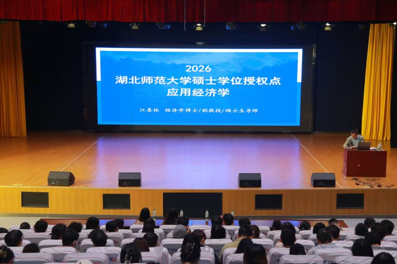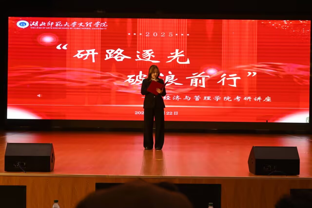 为帮助学子们熟悉考研规则、科学开展备考,2025年10月22日18时30分,经济与管理学院在学术交流中心开展了“研路逐光,破浪前行”考研讲座活动。本次活动特邀湖北师范大学经济管理与法学院的江喜林教授主讲,参加讲座的还有完美网页版经济与管理学院辅导员郑莎莎、田蓉蓉、刘成慈。