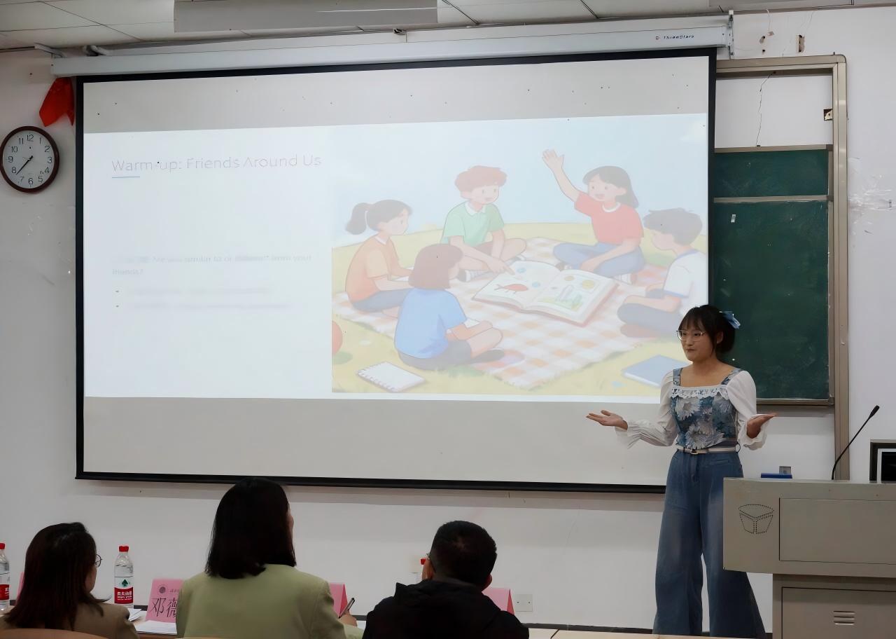 为强化师范生教学实践能力,搭建教学经验交流与风采展示的优质平台,推动学院教育教学工作迈向高质量发展新台阶,2025年10月27日晚18:30,完美网页版外国语学院教师技能讲课大赛在1B101教室顺利举行。评审团由英语教研室主任邓薇薇、团学指导老师杨峰,以及专任教师邬文芳、向若怡、李阿欣组成。