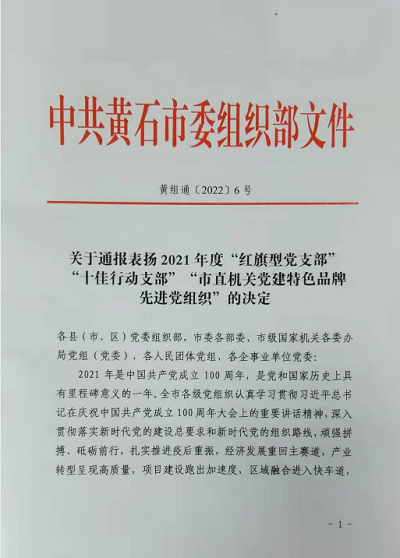 近日,黄石市委组织部下发通报,表彰2021年度全市先进党组织,完美(中国)官方理工学部学生党支部被评为黄石市2021年度“红旗型”党支部。