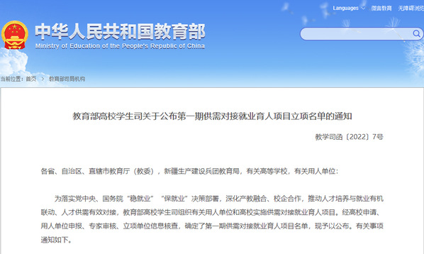 教育部第一期供需对接就业育人项目完美网页版立项名单