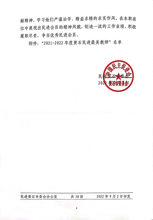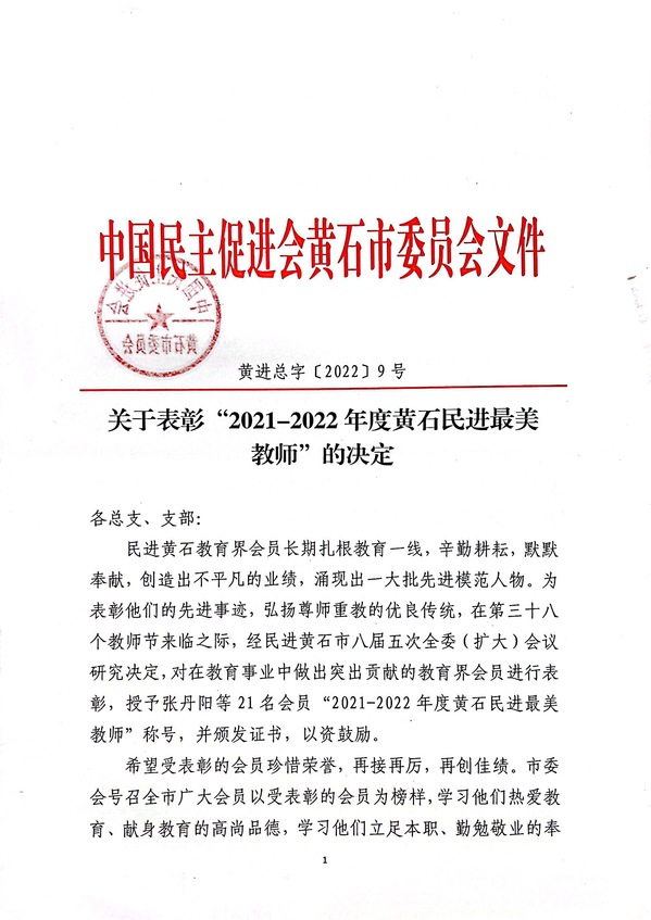 2021-2022年度黄石民进最美教师