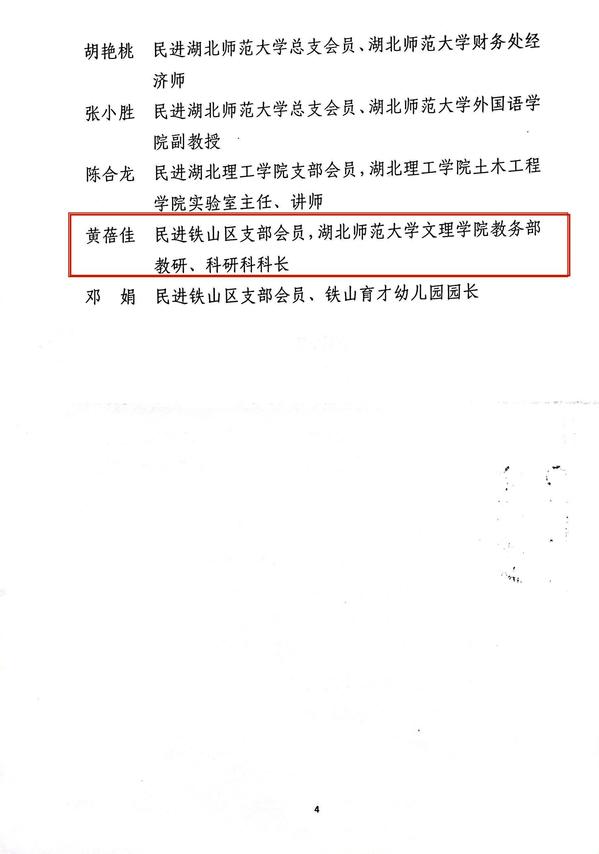 中国民主促进会黄石委员会决定,对在教育事业中做出突出贡献的教育界会员进行了表彰,