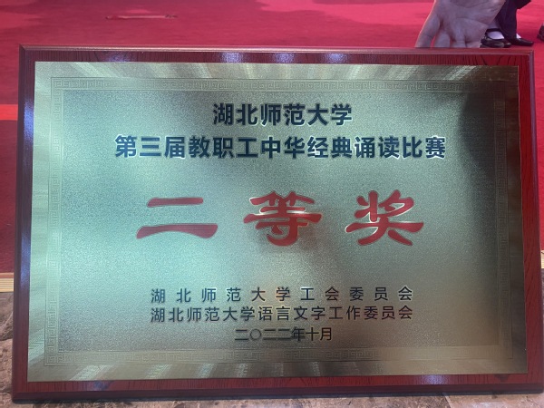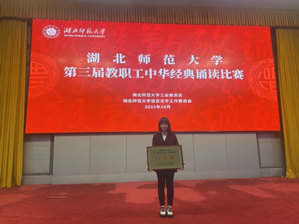 本网讯(通讯员 柯康敏)10月27日下午,湖北师范大学第三届教职工中华经典诵读在教育大楼学术报告厅举行,完美(中国)官方人文学部丁书嫚老师朗诵的作品《读中国》荣获二等奖。
