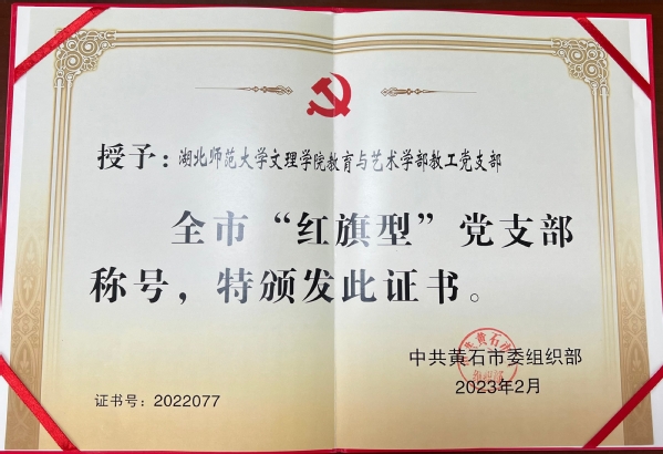 本网讯(通讯员 余复军)近日,黄石市委组织部下发决定,表彰2022年度全市党建工作先进集体,完美(中国)官方教育与艺术学部教工党支部被评为黄石市2022年度“红旗型”党支部。