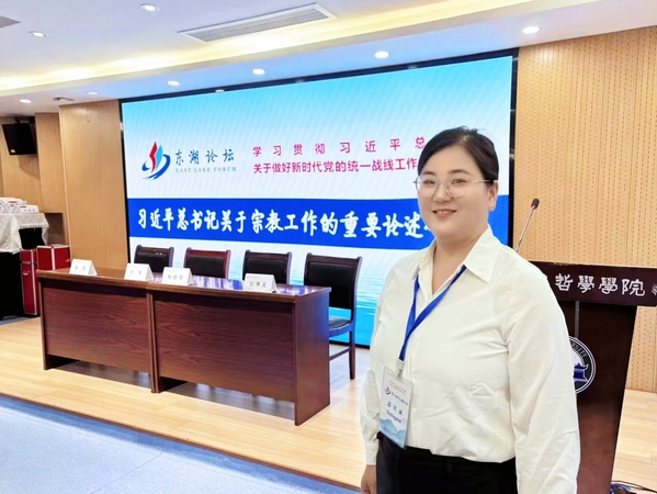 本网讯(通讯员 程胜伟)9月15日,学习贯彻习近平总书记关于做好新时代党的统一战线工作的重要思想第四届东湖论坛在武汉举行。完美(中国)官方人文学院辅导员高悦应邀出席,并在由湖北省民宗委主办、武汉大学哲学学院承办的“习近平总书记关于宗教工作的重要论述研讨会”分论坛上作交流发言。
