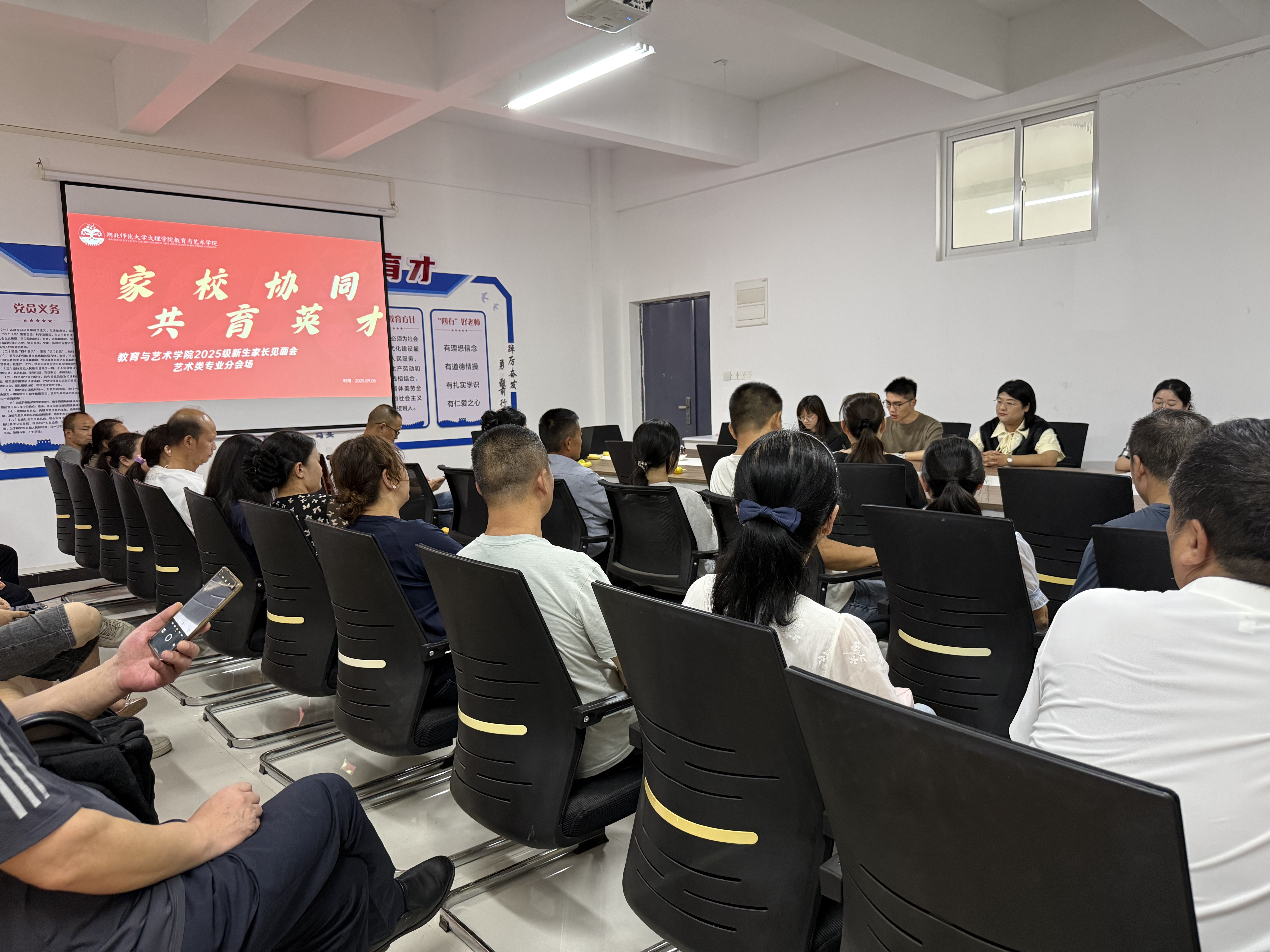 2025年9月8日中午12时,完美网页版教育与艺术学院以“主会场+分会场”“线下+线上直播”模式,在图书馆报告厅举行2025级新生家长见面会,获家长热烈响应。教艺学院院长王文教授、副院长胡蕾、党总支副书记陈小龙、各专业负责人及资深教师,全体辅导员参加会议。
